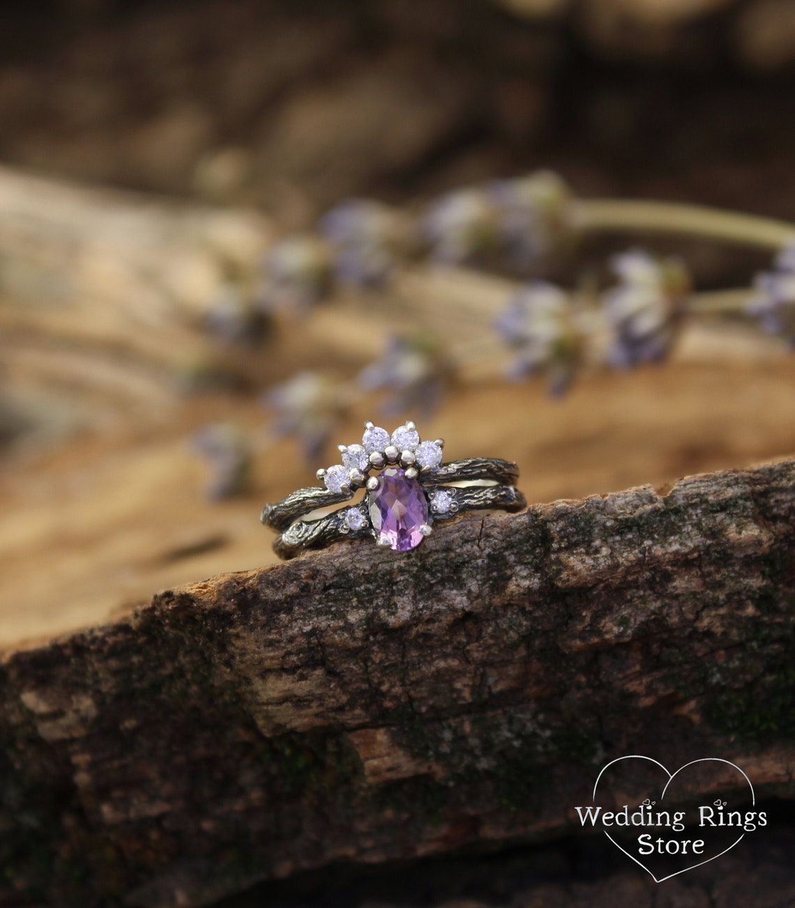 Marquise cut Amethyst Engagement Ring with Side Heart