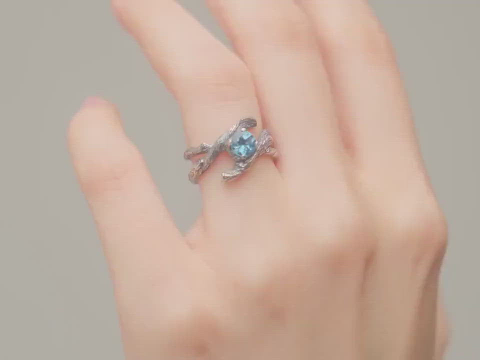Topaz with Leaves and braided Twigs — Silver Branch Engagement Ring