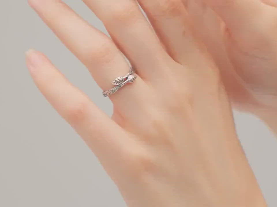 Dainty Two tiny Leaves Silver Women's Branch Ring