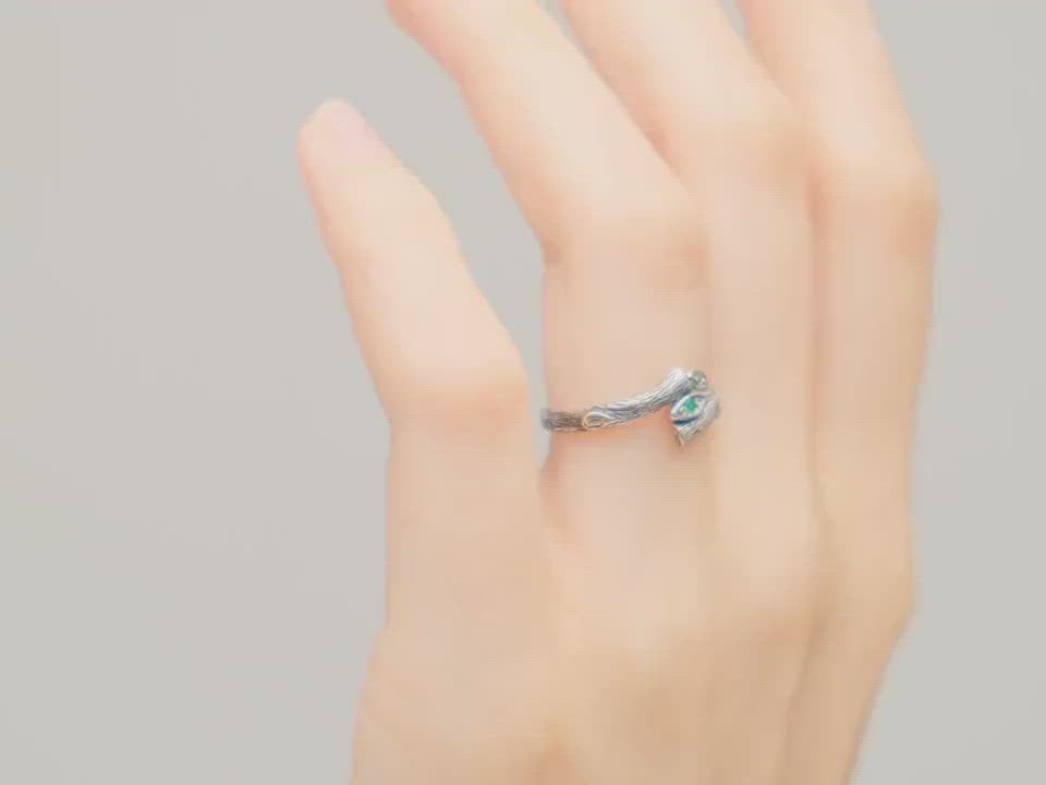 The incredible texture and details of this delicate twig with emerald leaves make this ring a piece of art. This branch silver ring symbolizes your love's eternal growth. The perfect gift for her.