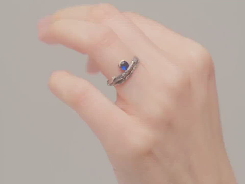 This silver nature Engagement Ring is so dreamy and lovely. The fairy gnomes left a blue sapphire on a dainty twig. Give this treasure to the Princess you know.
