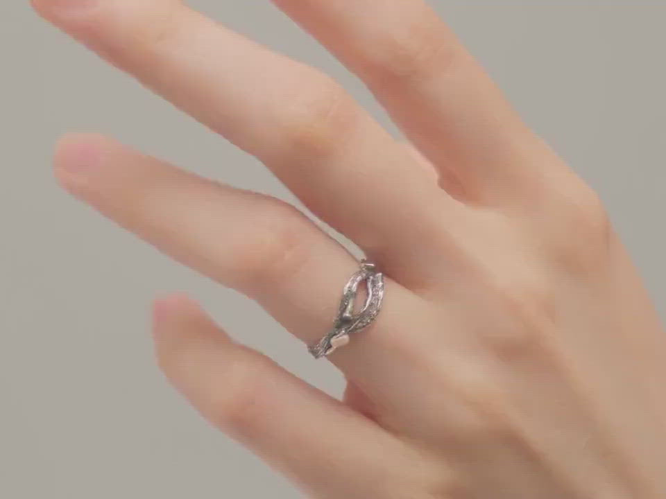 Silver twigs with tender leaves woven into an exquisite ring of nature. This is a fabulous gift for your friend and beloved. A unique ring for a unique person.