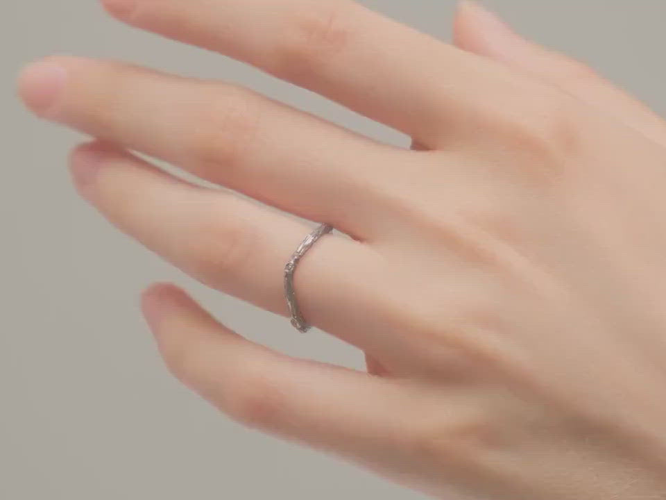 Tiny handmade silver wedding ring with tree bark texture. It's light and delicate stakable ring. Your sweetheart will love wearing this elegant twig.
