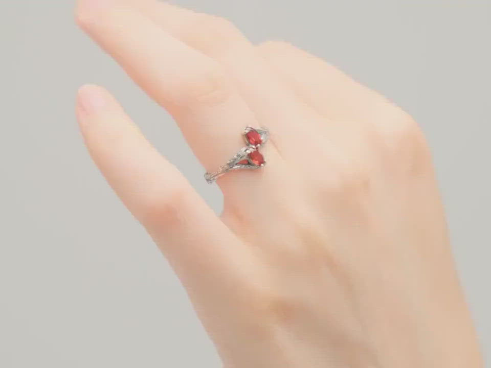Two Oval Garnets Tiny Silver Branch Engagement Ring