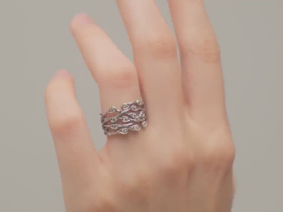 Wide Braided Branch Silver Womens Ring inspired by Nature
